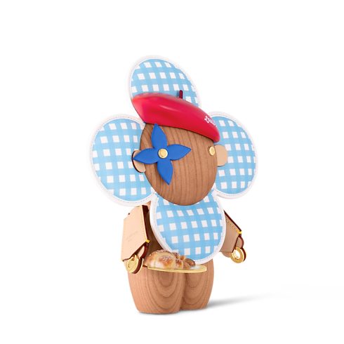 Die Vivienne In Paris verkörpert das ikonische Maskottchen in der Heimatstadt des Hauses Louis Vuitton. Im stilechten Tricolore-Look präsentiert sich die Figur mit einer roten Baskenmütze samt weißem „Louis Vuitton“ Schriftzug, Blütenblättern in blau-weißem Vichy-Karo und einem Auge aus Leder in Form einer blauen Monogram-Blüte. Diese Vivienne genießt einen unbeschwerten Tag im Lateinischen Viertel am linken Seine-Ufer und trägt ein Croissant aus einer Bäckerei in Saint-Germain-des-Prés auf einem goldfarbenen Teller.