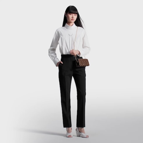 Die Wallet On Chain Lily in Monogram Canvas kombiniert eine elegante Rechteckform mit einem subtilen Retro-Design. Ihr Überschlag ist mit einem goldfarbenen Emblem samt Nieten und einer gravierten Louis Vuitton Signatur versehen. Das Modell ist geräumig genug, um alles Wesentliche für den Tag wie für den Abend zu verwahren. Dank seiner abnehmbaren, verstellbaren Schulterkette mit einem LV Circle Anhänger erlaubt es mehrere Tragemöglichkeiten.