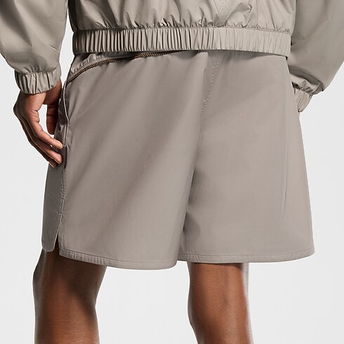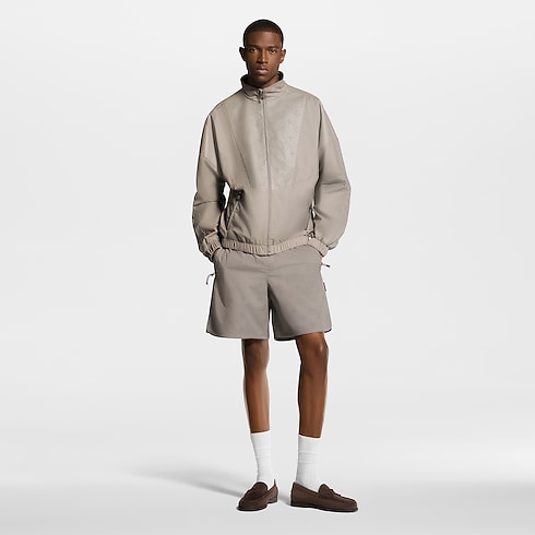 Diese von Sportbekleidung inspirierten Warm Up Shorts aus technischem Ripstop vereinen Komfort mit zeitloser Eleganz zu einem legeren Sommerlook. Ein perforiertes Monogram-Motiv setzt einen zarten Signatur-Akzent auf den Stoffbahnen auf der Vorderseite und sorgt für luftigen Komfort an warmen Tagen. Eine Paspelierung mit Micro Damier-Motiv fügt ein grafisches Detail an der Passe auf der Rückseite hinzu. Eine dazu passende Trainingsjacke aus Leder und Nylon vervollständigt das raffinierte Ensemble.