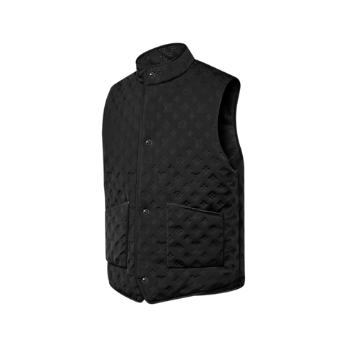 Diese wendbare schwarze Weste mit leichter Wattierung ist ideal für die Übergangszeit und kann unter einem Mantel oder als legere Outerwear getragen werden. Das Modell ist auf der einen Seite mit einem gesteppten Monogram-Motiv und auf der anderen Seite mit einem Jacquardgewebe samt Damier-Motiv verziert. So verleiht die Weste jedem Look wahlweise einen grafischen oder einen zeitlosen Akzent des Hauses Louis Vuitton.